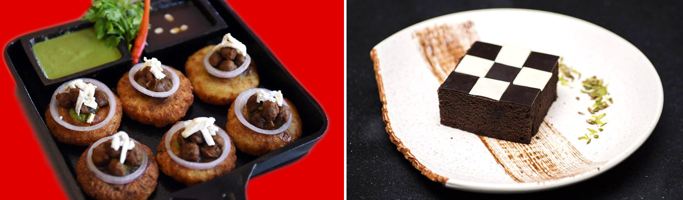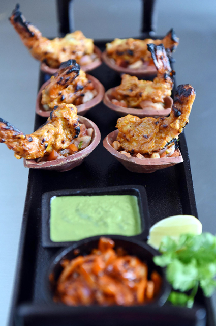Innovation is what tickles your taste buds in their signature dishes from their appetizers, main course or their eclectic cocktails. We started with a unique intoxicating Long Island ‘Palang Todh’ served in a flat metal-bed with a floating duck priced at Rs. 300. The Kerala Coconut Mohito was served in a fresh Coconut – the white rum laced with mint and curry leaves was very refreshing at Rs. 200. The most amazing appetizer was their Talwaari Malai Murg (Rs.345) which was served on a metal pole which symbolized an old fashioned sword. The one square foot sabz seekh along with the paneer cigars made the vegetarian flair more exciting than ever before! The Malaai Bharwan Khumb priced at Rs. 195 was delicious as it was elegantly stuffed with cottage cheese and cream. This was served in an old fashioned metal chest.